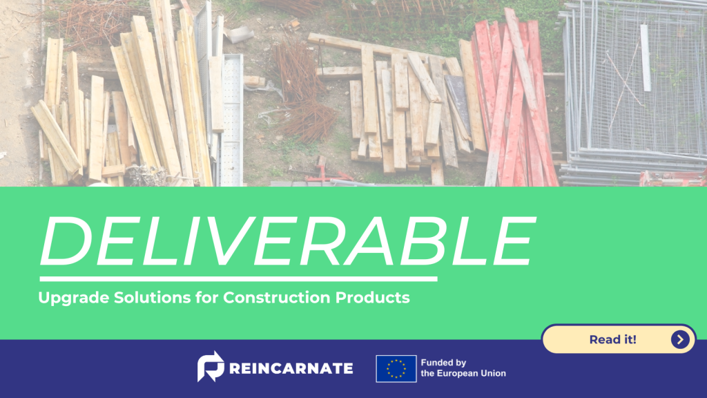 Reincarnate drives circular innovation by developing pathways to enhance, repurpose and reintegrate building components into new value cycles. Deliverable 2.3 – Upgrade Solutions for Construction Products explores how upgraded, repurposed and reused building components (URRBC) can reduce environmental impact, extend material life and support the shift away from linear demolition practices.